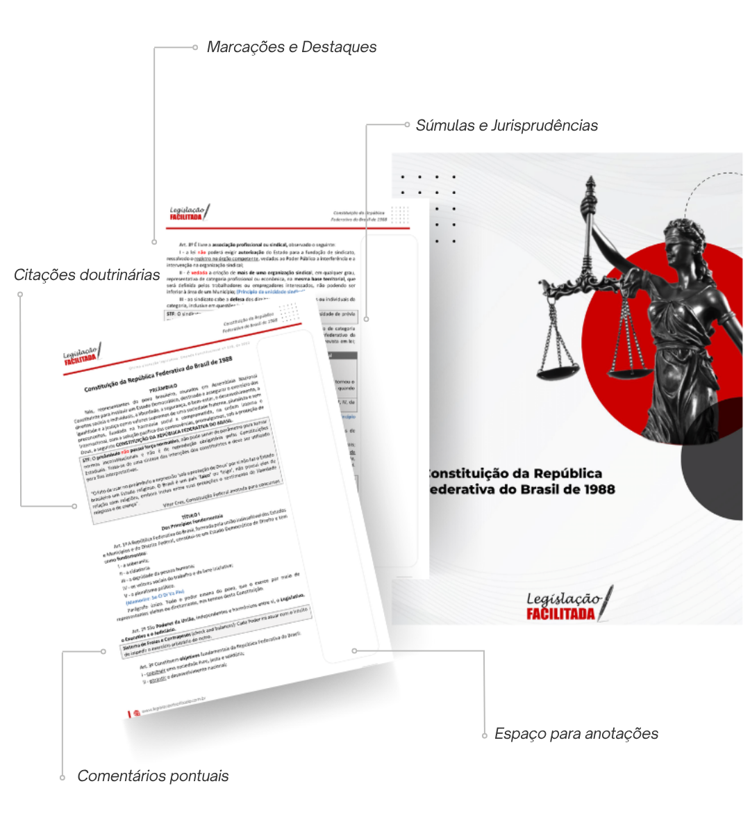 Legislações Facilitadas são versões adaptadas de textos legais que não alteram o significado ou a intenção da lei original, mas adicionam recursos visuais, tais como marcações, destaques, quadros, tabelas, jurisprudências, súmulas, citações doutrinárias e comentários pontuais, para tornar o estudo e a memorização mais simples e agradável.